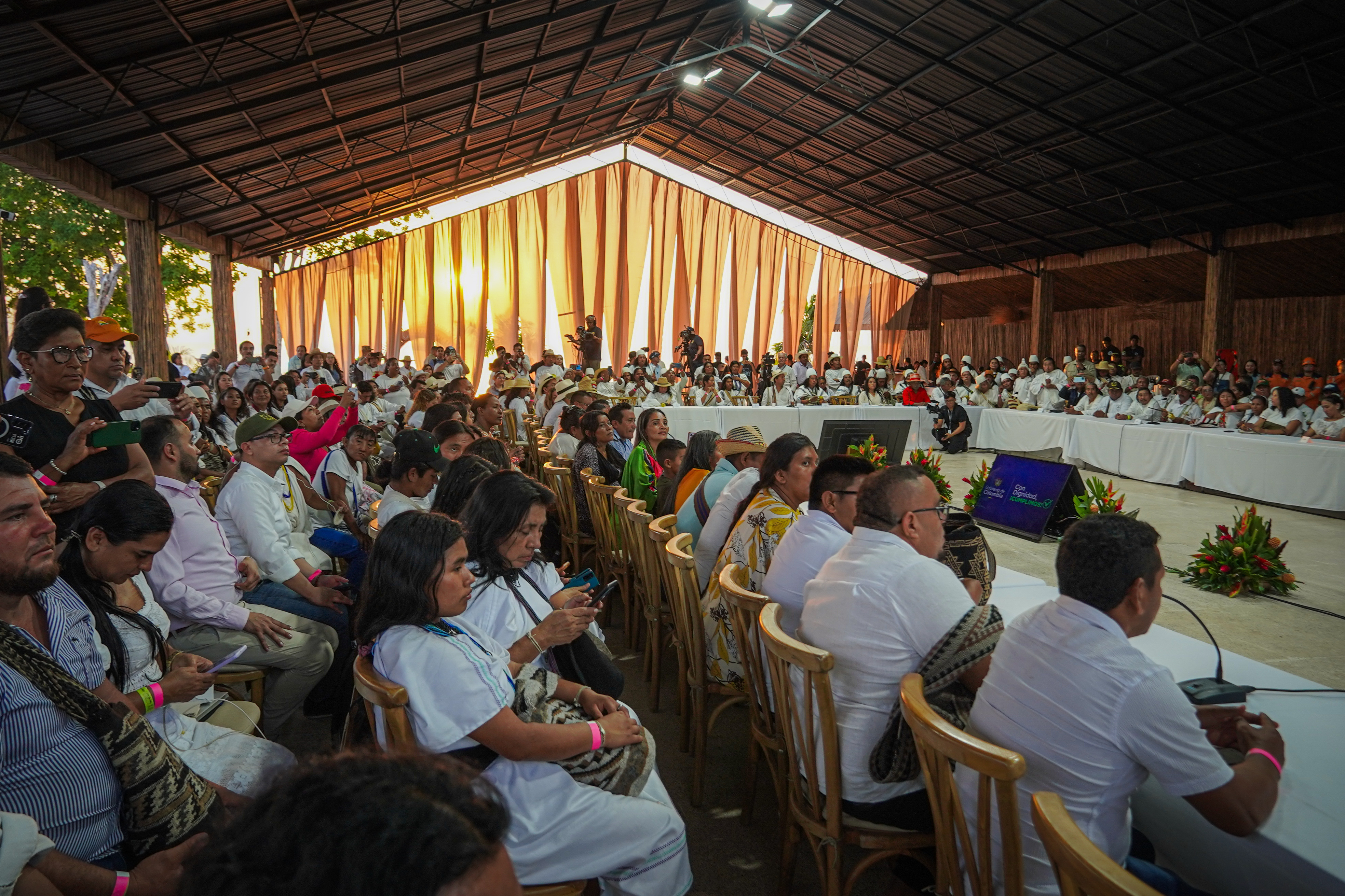 Con el propósito de garantizar la pervivencia física y cultural de los pueblos étnicos de la Sierra Nevada, llegamos al corazón del mundo a anunciar la expedición de un nuevo instrumento jurídico para la defensa del sistema de sitios sagrados de la línea negra: territorio ancestral que ha cuidado el territorio.